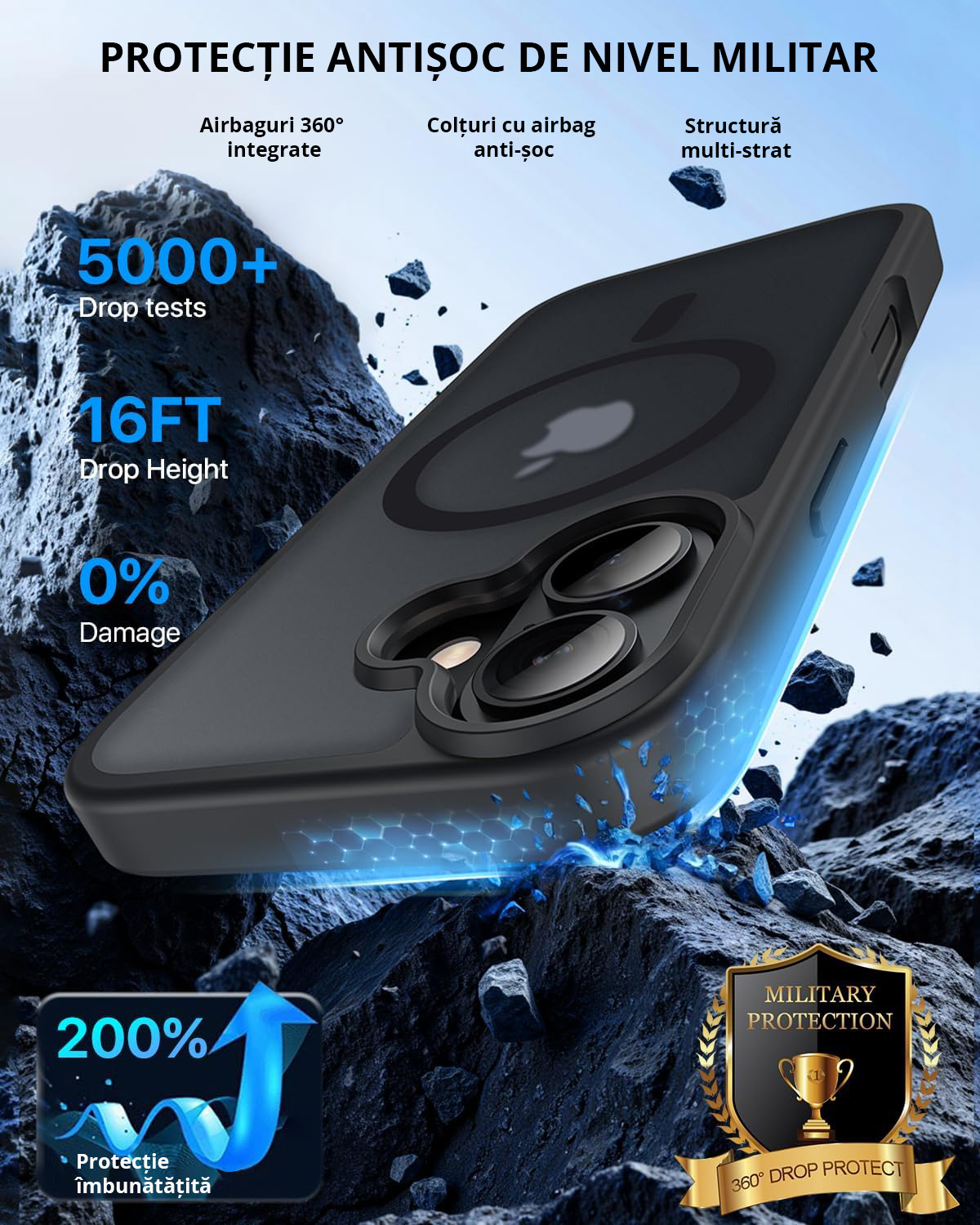 Funcții: Rezistent la șocuri, Anti amprentă, Rezistent la praf, Wireless charging, Anti alunecare, Rezistent la zgârieturi, Magnetică