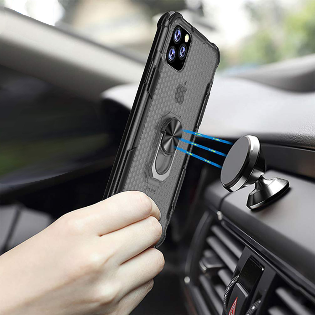 - Inel metalic cu rotatie de 360 grade, inelul metalic atasat pe mijlocul husei, va ajuta sa folositi telefonul cu functie stand si functie magnetica pe suporturile auto.