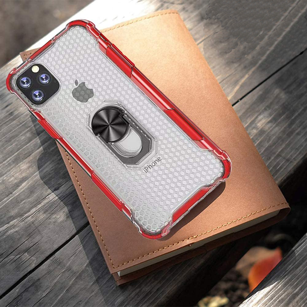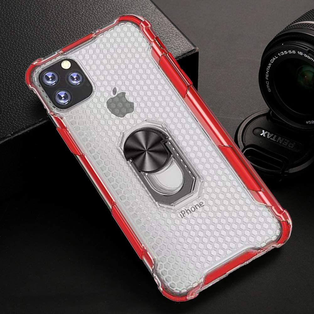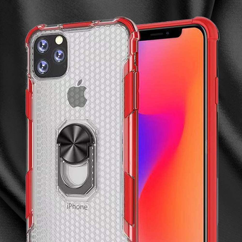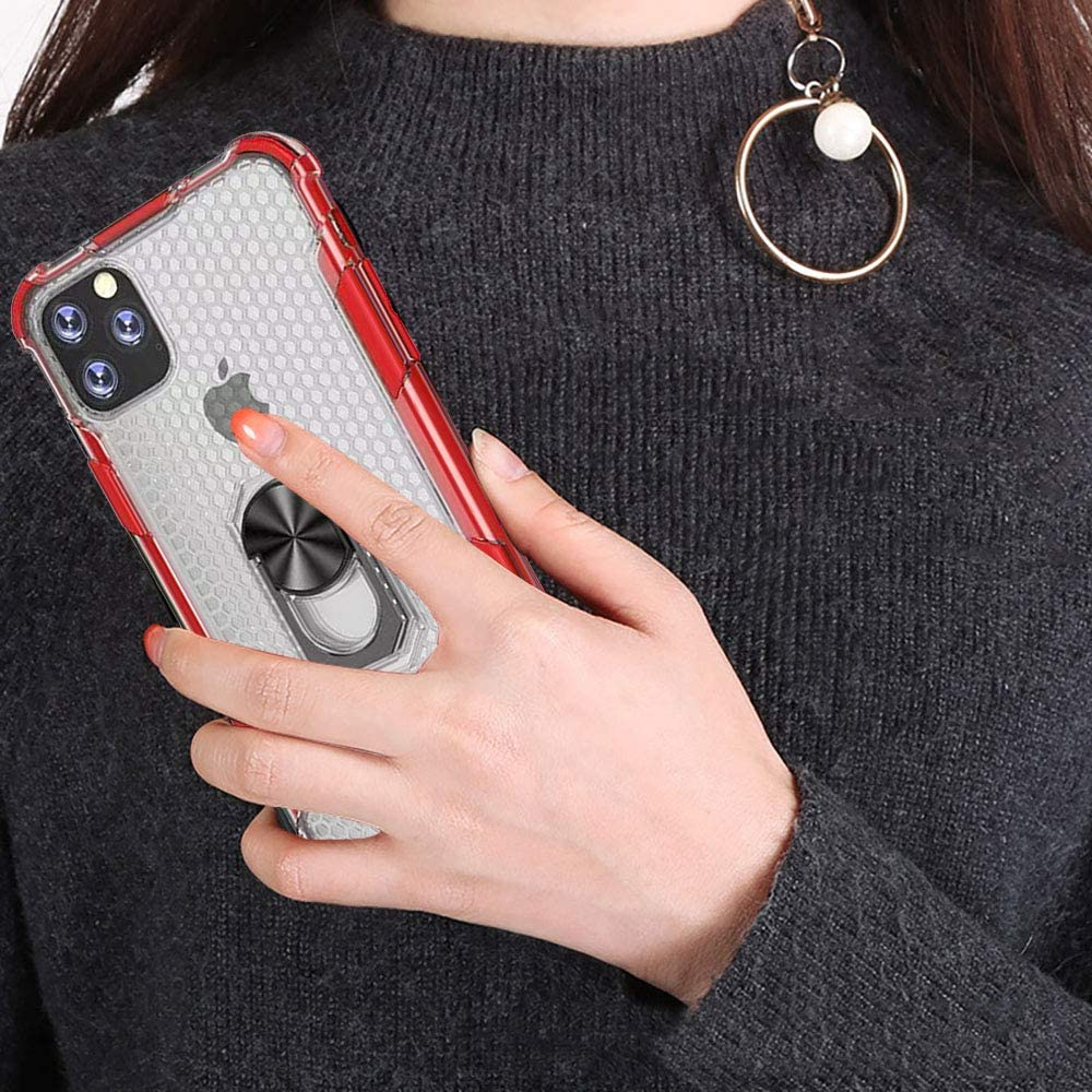 Husa pentru IPhone 12 MINI, Hybrid Antisoc, carcasa cu bumper, inel rotativ 360 si Kickstand, Rosu