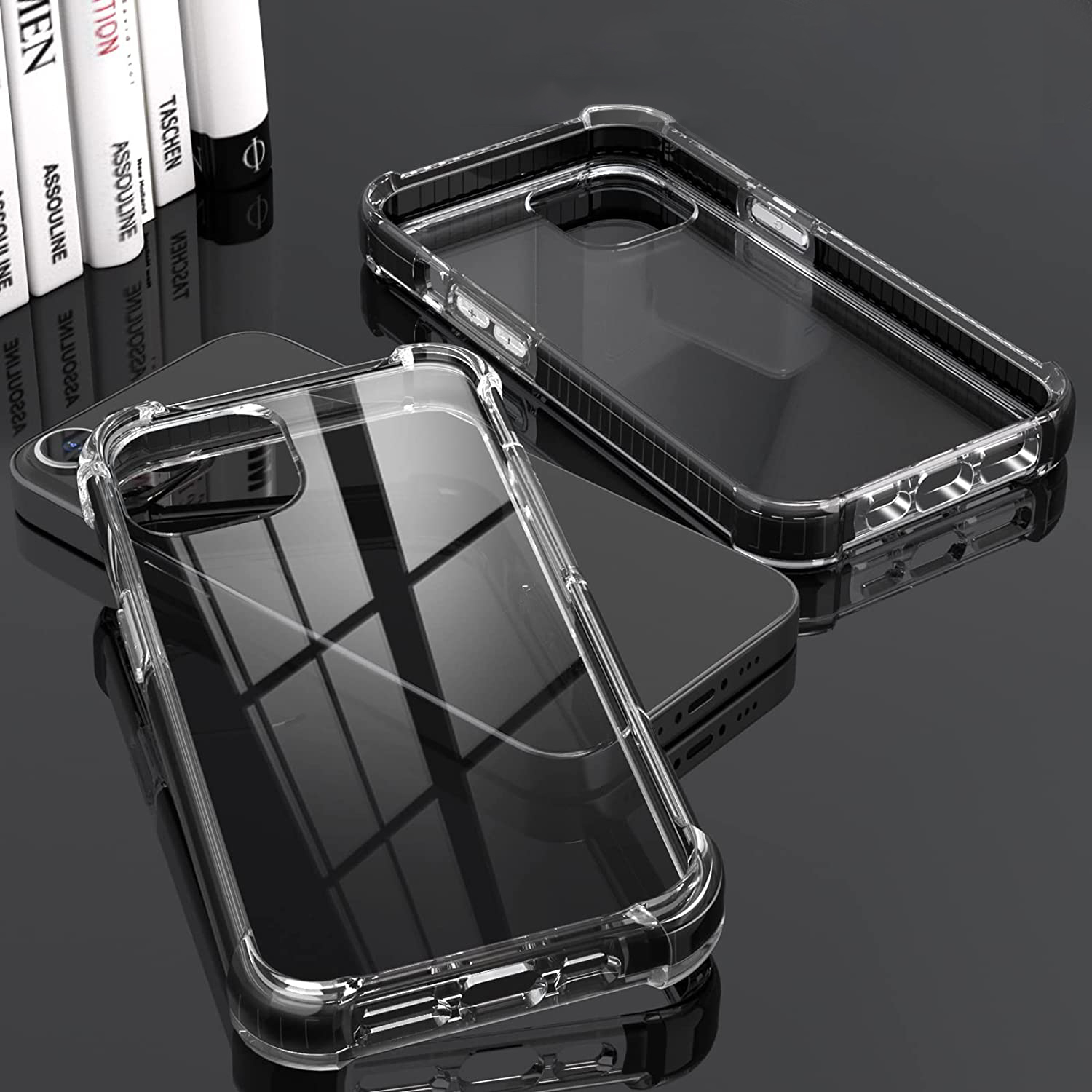 Husa pentru iPhone 13, Hybrid Antisoc, carcasa spate PC transparenta cu Bumper, Negru