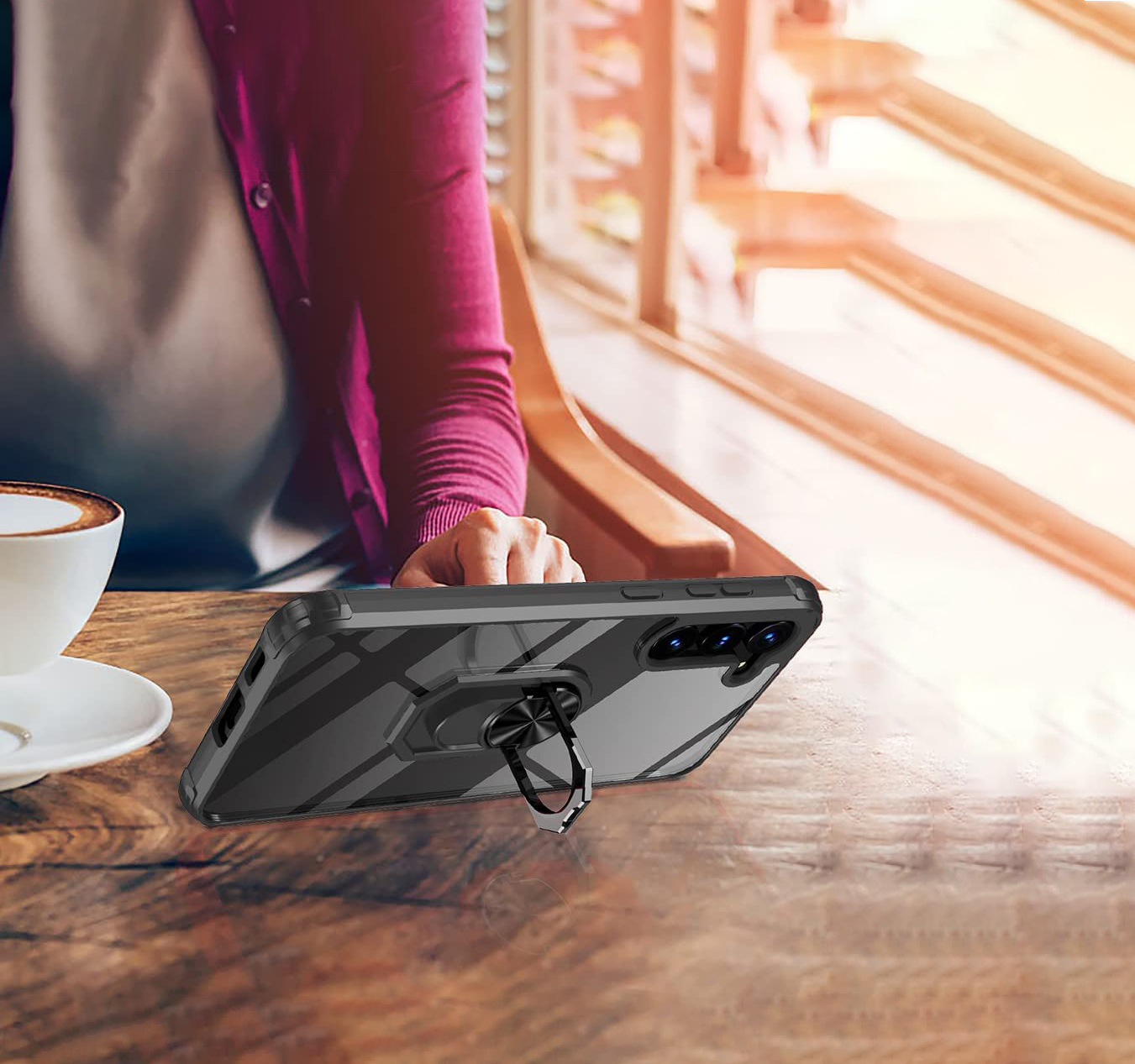 Husa este dotată cu suport rotativ de 360°, inelul metalic este foarte stabil, perfect pentru a-ți elibera mâinile în timpul apelurilor video sau vizionării unui film.