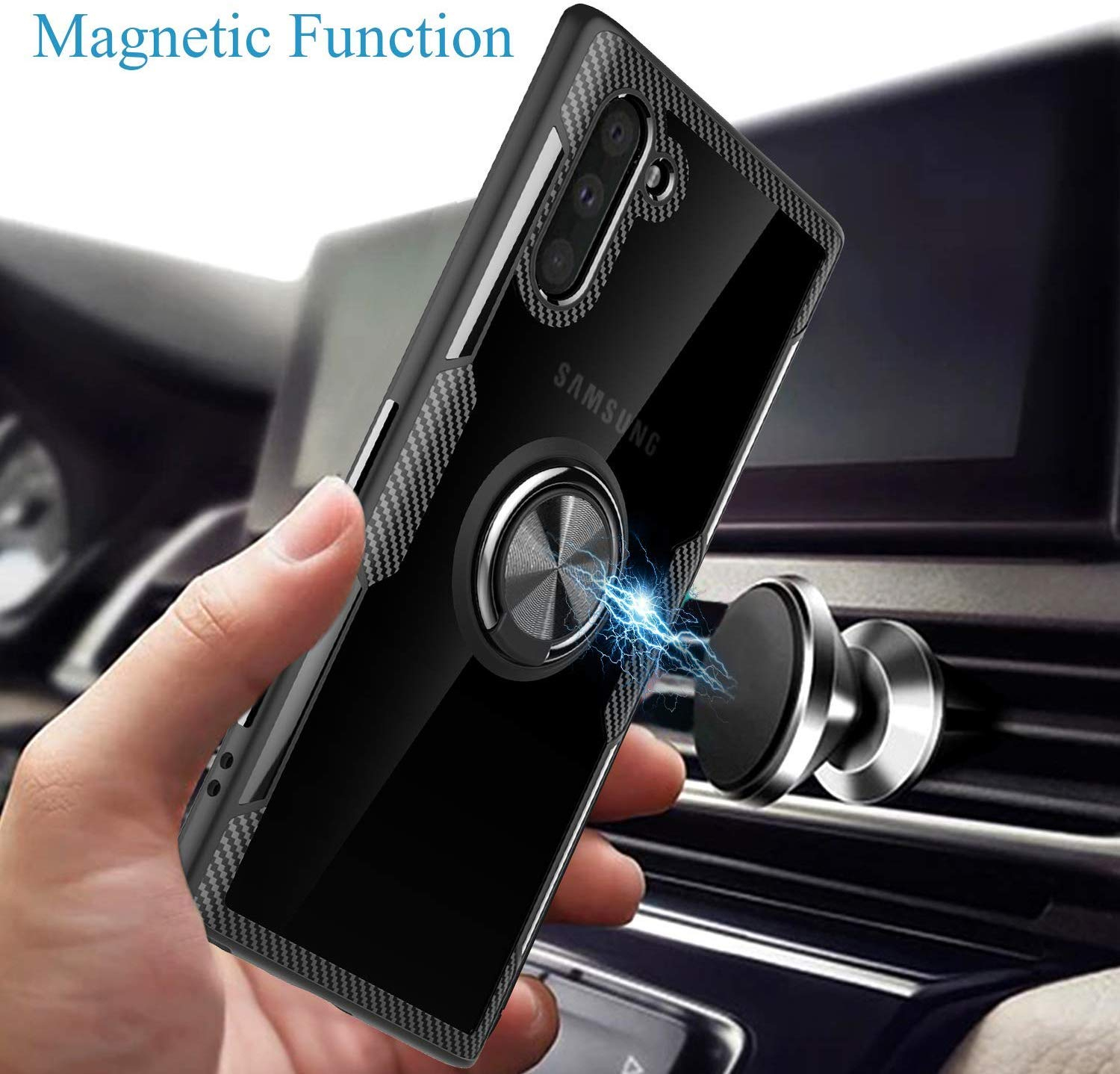 Husa Samsung Galaxy Note 10, Hybrid Antisoc, carcasa cu inel rotativ 360 si Kickstand, Negru